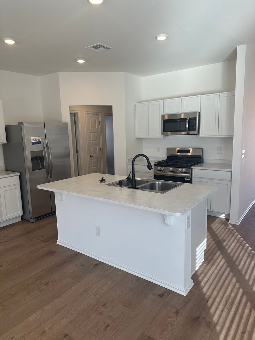 kitchen island, and a spacious pantry. Luxury vinyl plank flooring adds a touch of elegance