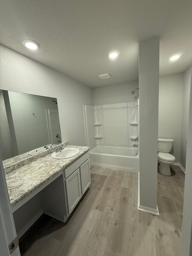 The two bathrooms are well-appointed and the home also includes a convenient laundry closet.