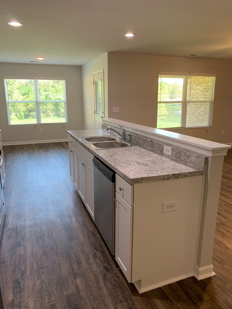 The spacious kitchen has plenty of counter tops, including a large island, to prepare your favorite meals and a pantry to store all your extras.