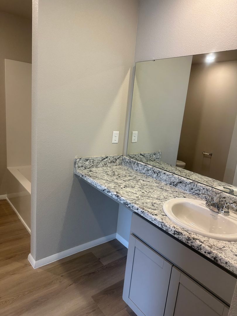 for all your storage needs. The luxury vinyl plank flooring adds a touch of elegance to the home,