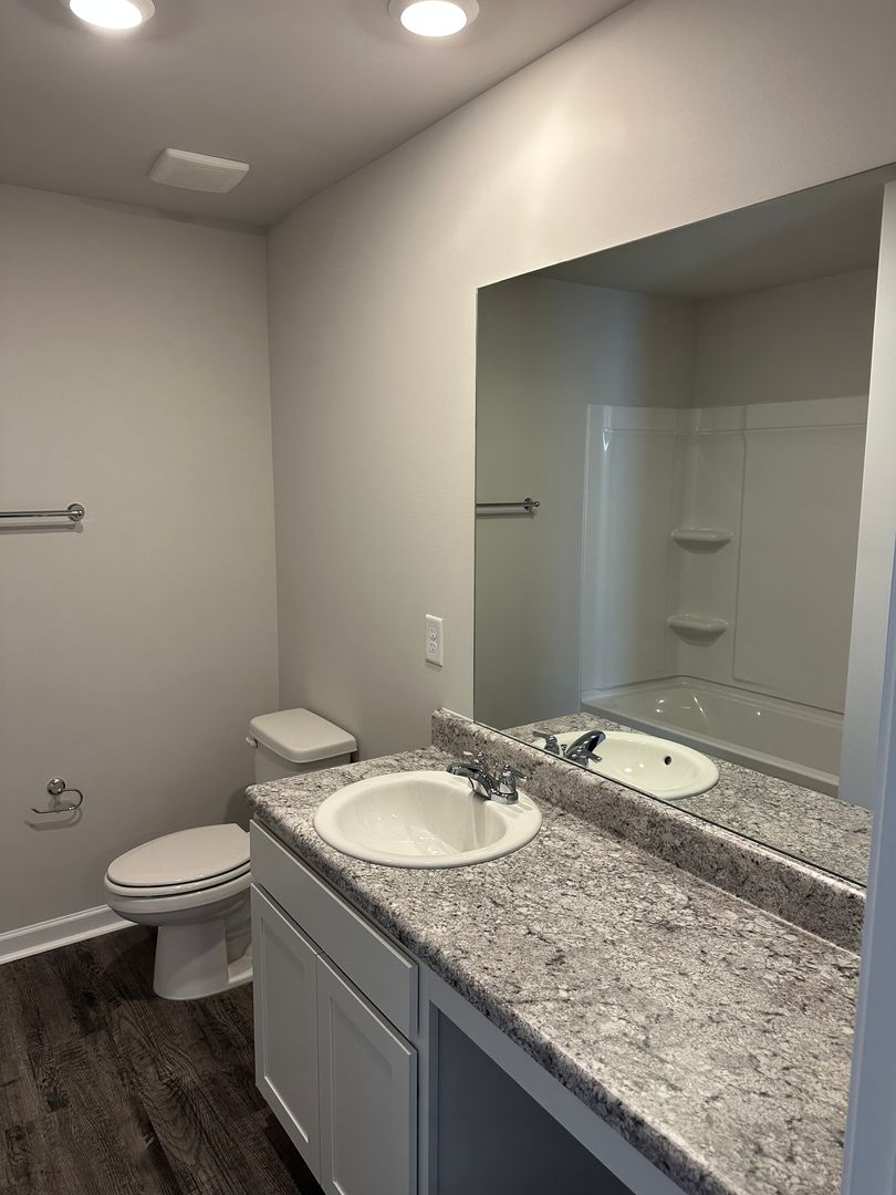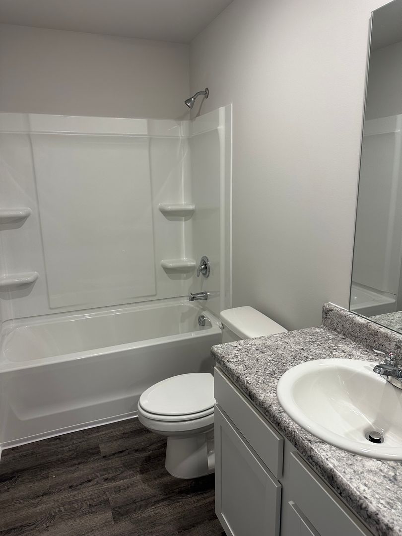 The two bathrooms are well-appointed and the home also includes a convenient laundry closet.