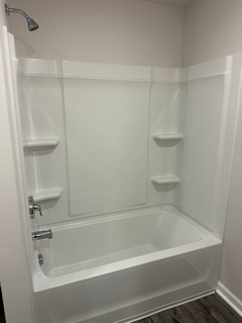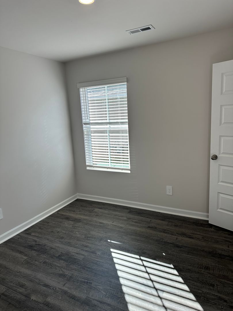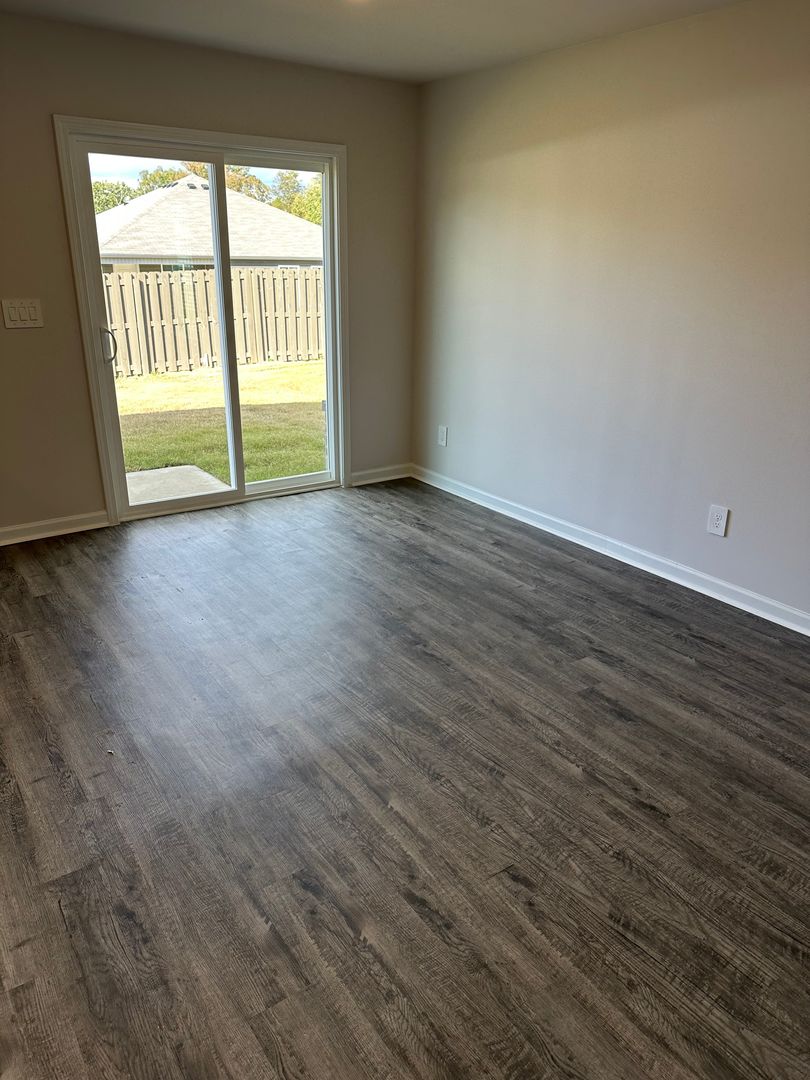The luxury vinyl plank flooring adds a touch of elegance to the home, while the window coverings provide privacy.