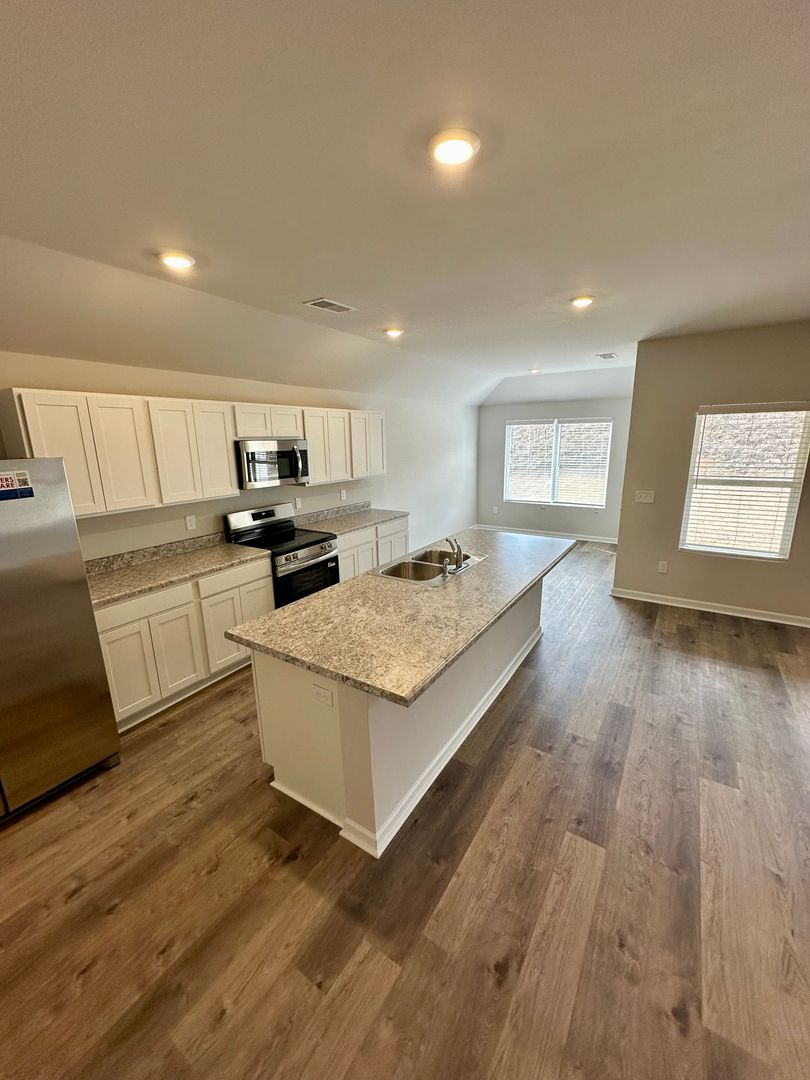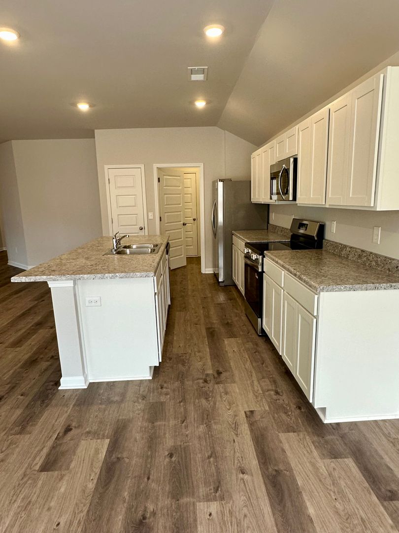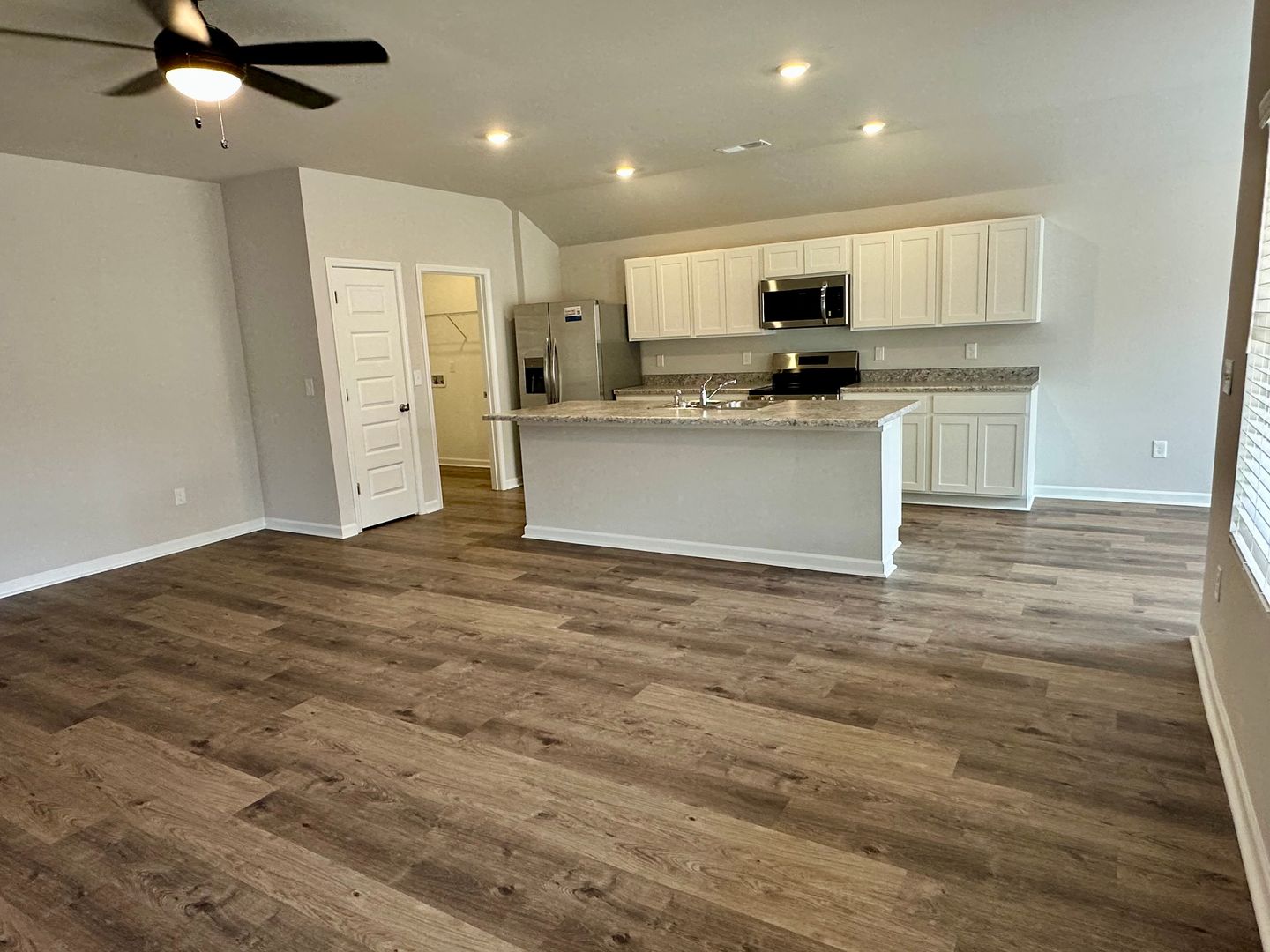 stainless steel appliances and a handy pantry, to the living area. Luxury vinyl plank flooring adds a