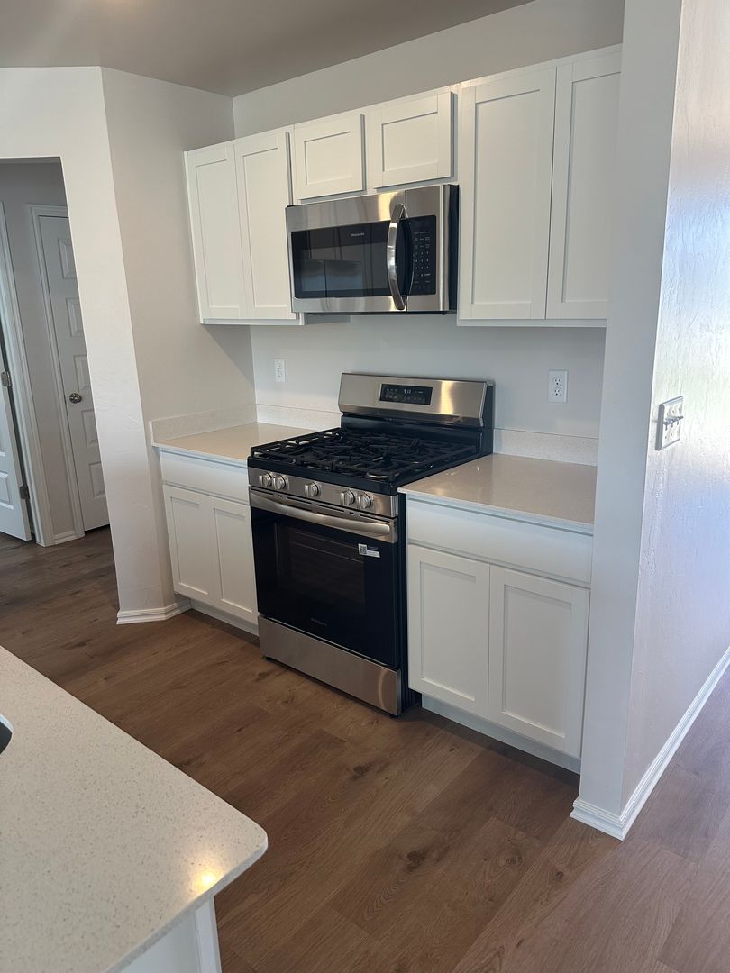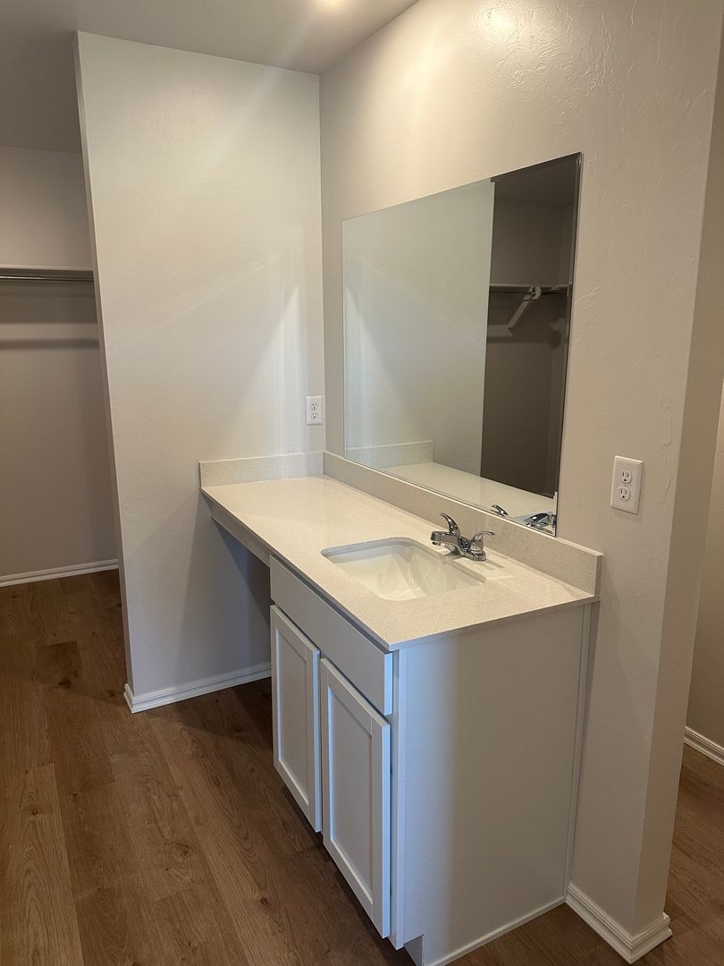 features luxury vinyl plank flooring throughout, adding a touch of elegance and durability. The