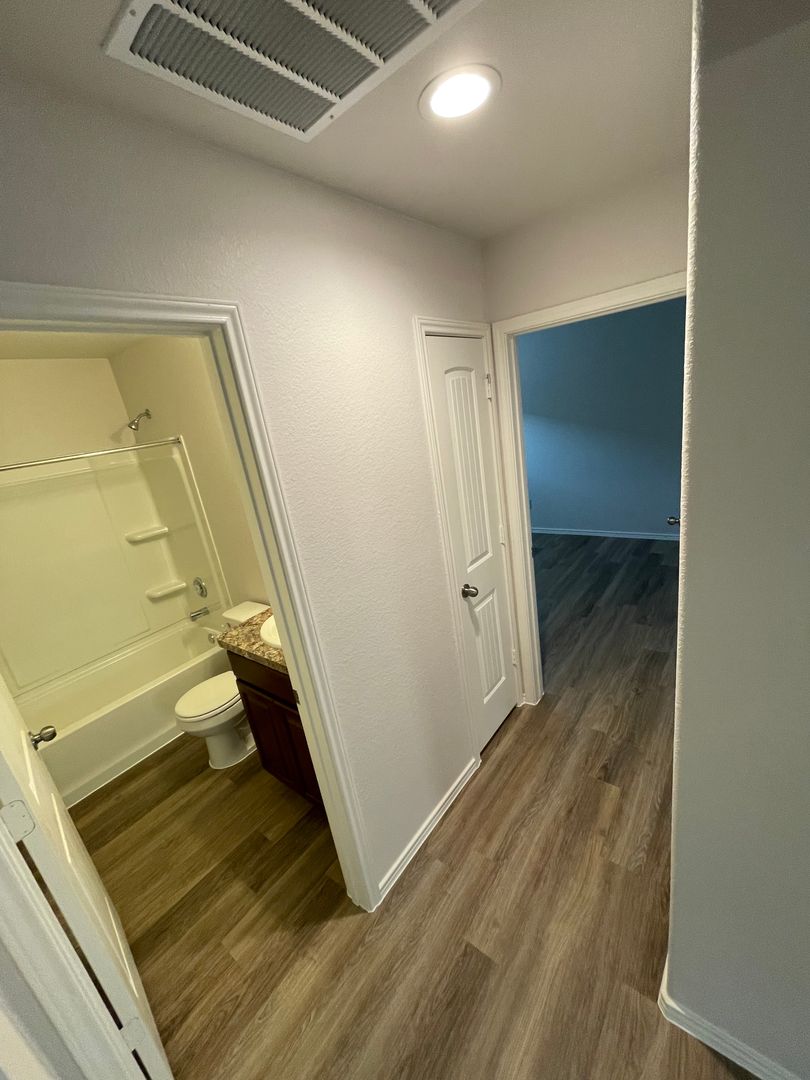 The guest rooms have sizeable closets and share a second bathroom.