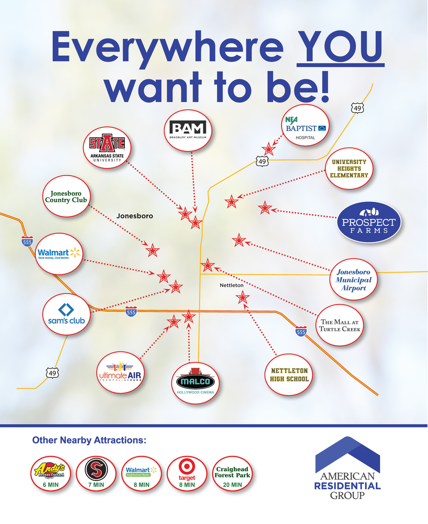 Located in the charming Prospect Farms community, you’ll enjoy convenient access to some of Eastern Arkansas’ top destinations, including shopping, outdoor recreation, and local attractions.