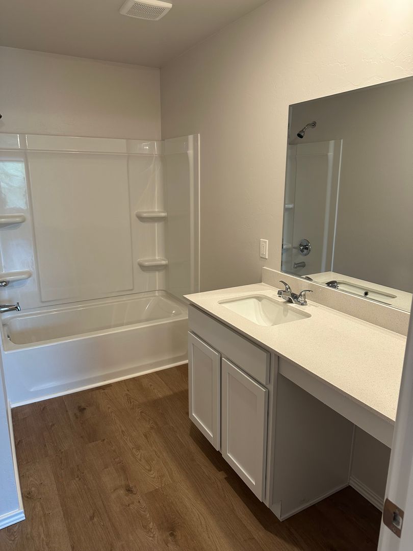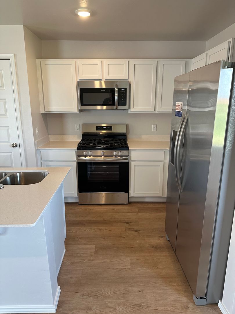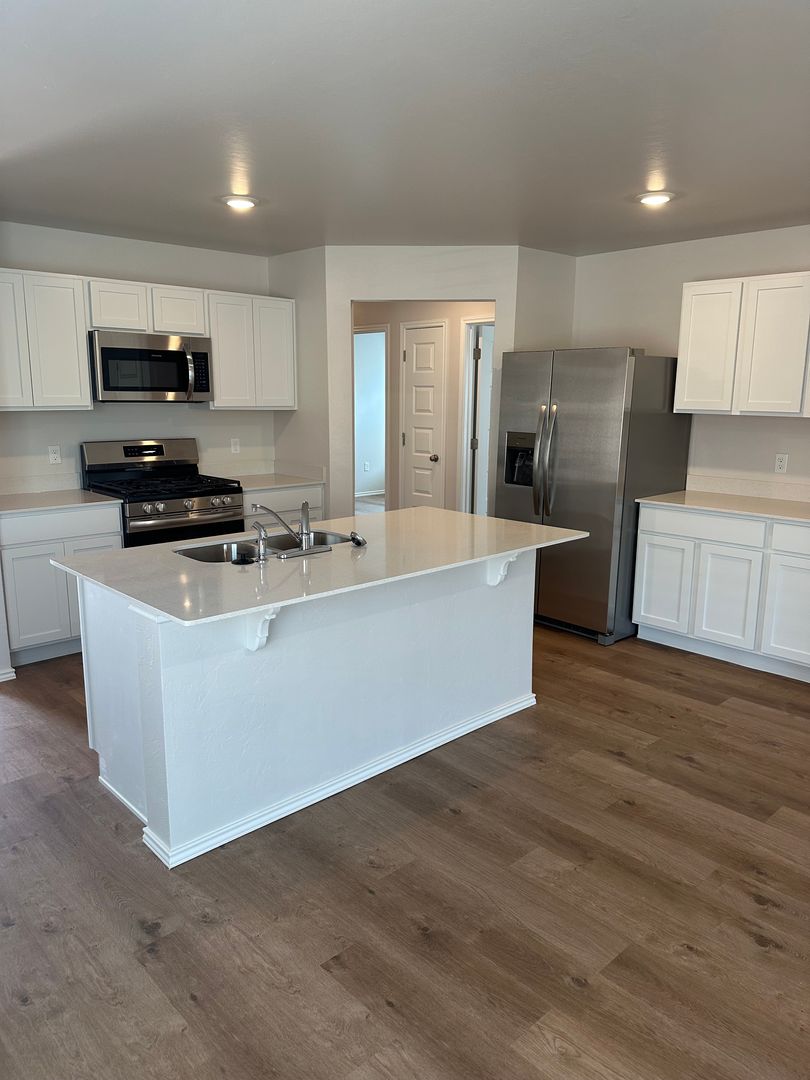 The kitchen is a chef's dream with quartz counter tops, ample storage in the pantry and the luxury of vinyl plank flooring.