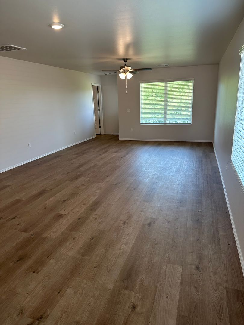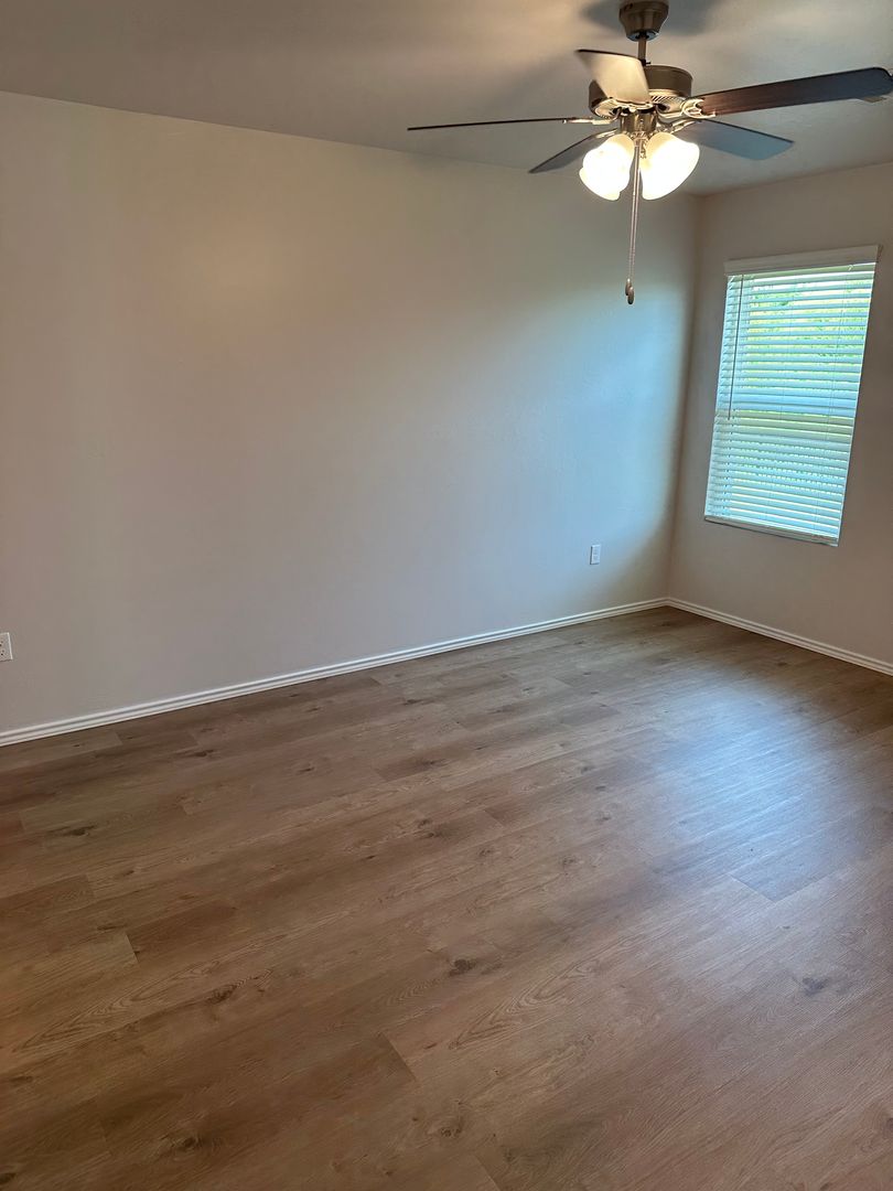Each bedroom is equipped with large closets, ceiling fans, and window coverings for your comfort. The primary suite is a true retreat with a walk-in closet and a private bathroom.
