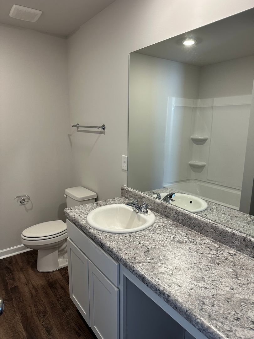The two bathrooms are well-appointed and the home also includes a convenient laundry closet.