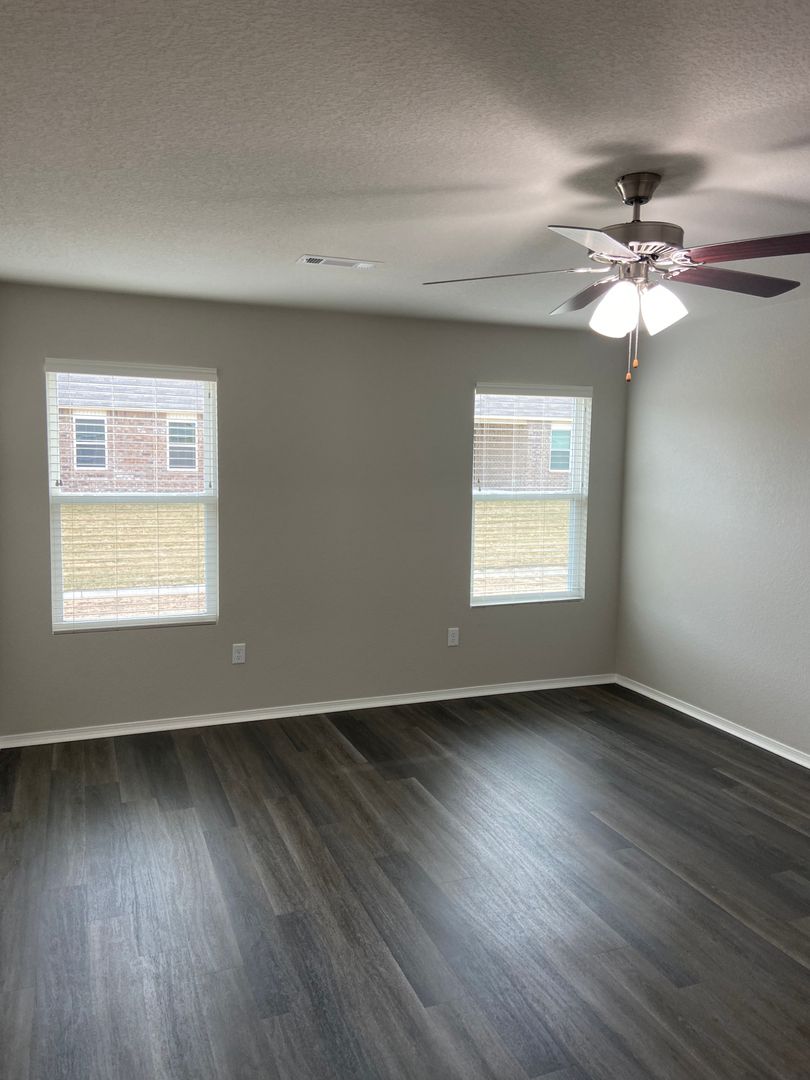 The home is equipped with stainless steel appliances, adding a modern touch to your cooking experience. The luxury vinyl plank flooring adds a touch of elegance, while the ceiling fans ensure a comfortable atmosphere throughout the seasons.