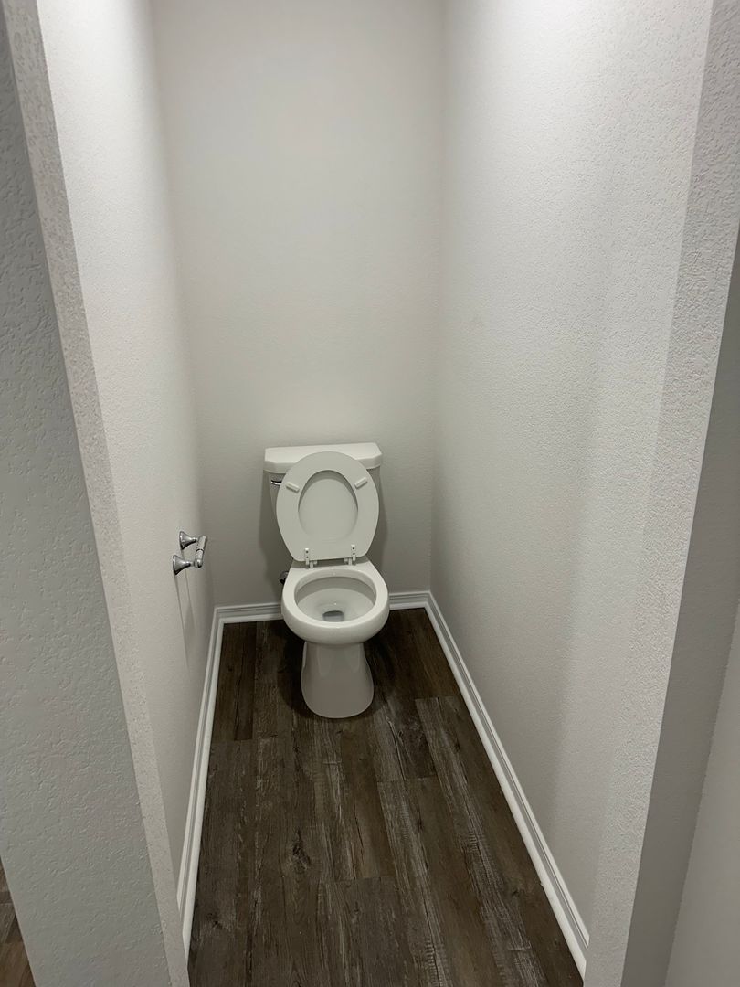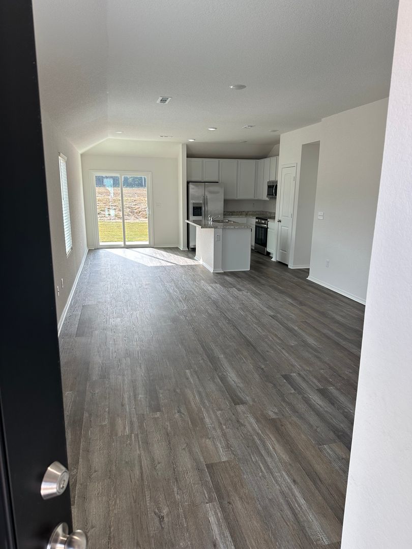 This modern home features luxury vinyl plank flooring, an open concept layout, a spacious primary suite, and large walk-in closets.