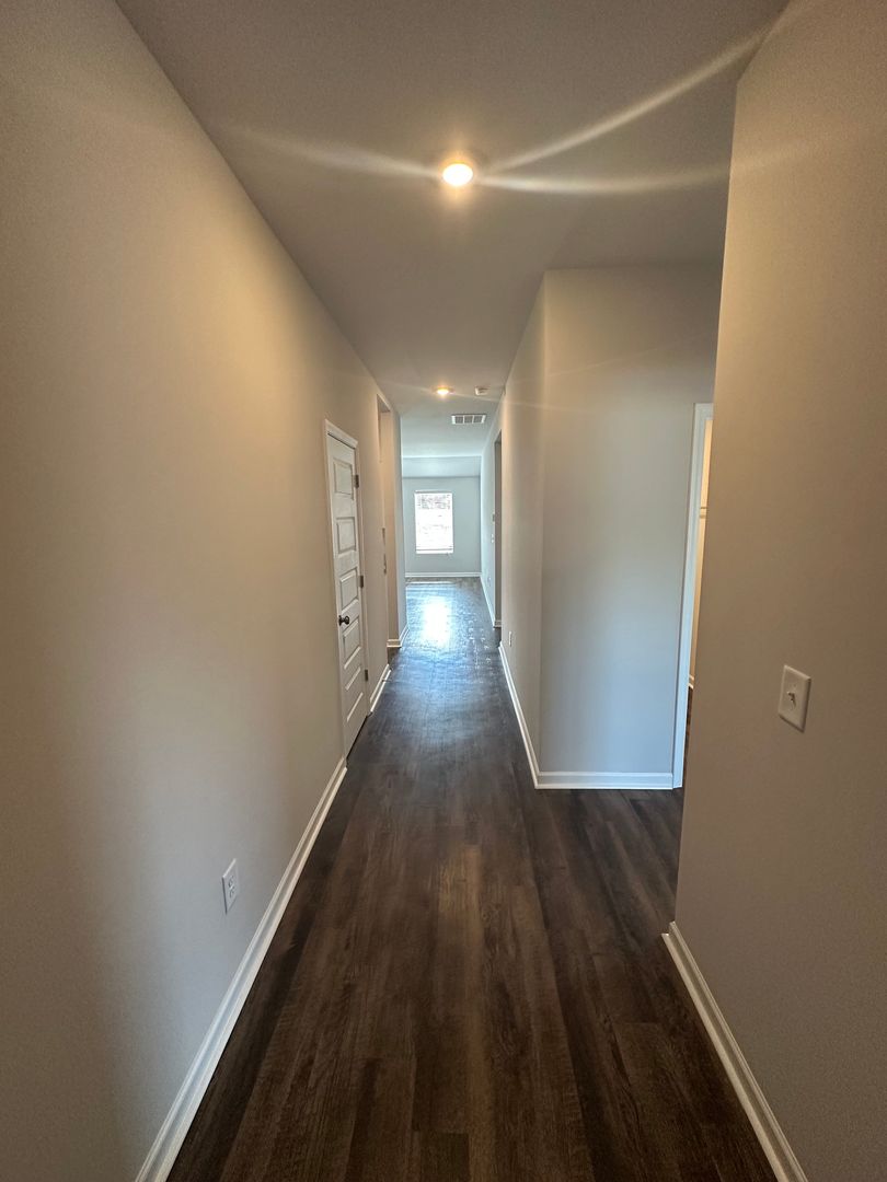 This modern home features luxury vinyl plank flooring, an open concept layout, a spacious primary suite, large walk-in closets, stainless steel appliances, blinds, and window coverings.