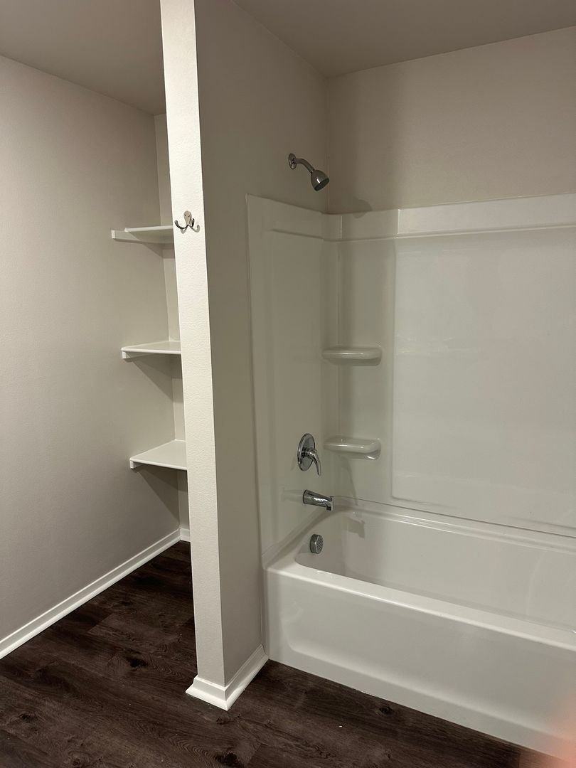 The two bathrooms are well-appointed and the home also includes a convenient laundry closet.