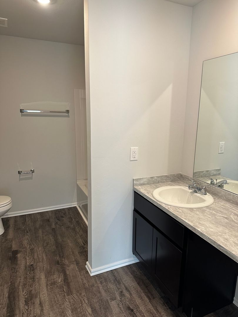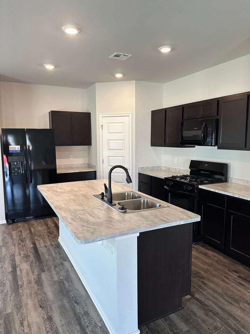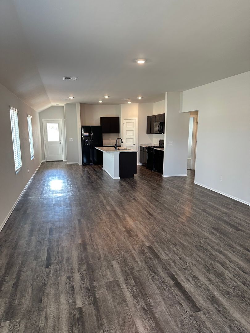 This spacious home features luxury vinyl plank flooring throughout, an open concept layout perfect for entertaining, a primary suite with walk-in closets, and stainless steel appliances in the kitchen.