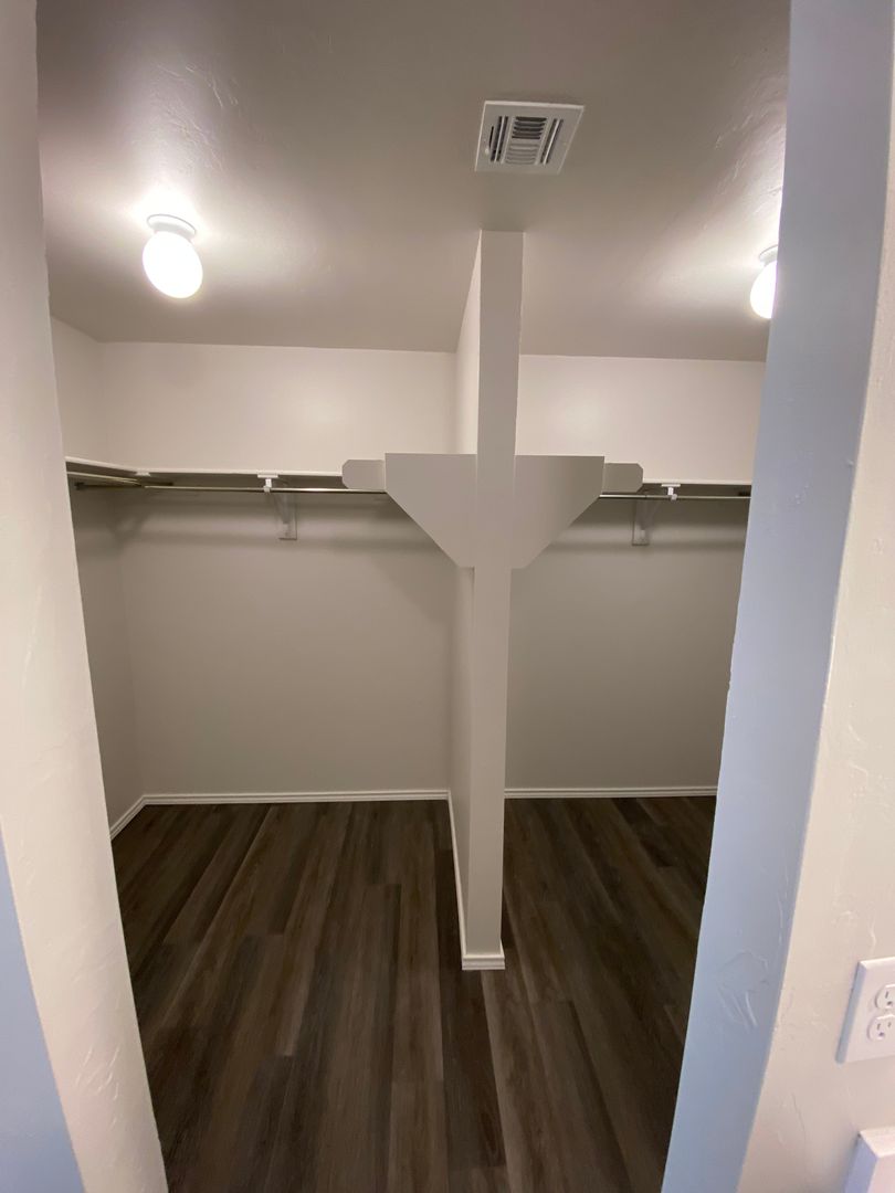 The guest rooms have sizeable closets and share the second bathroom located near them.