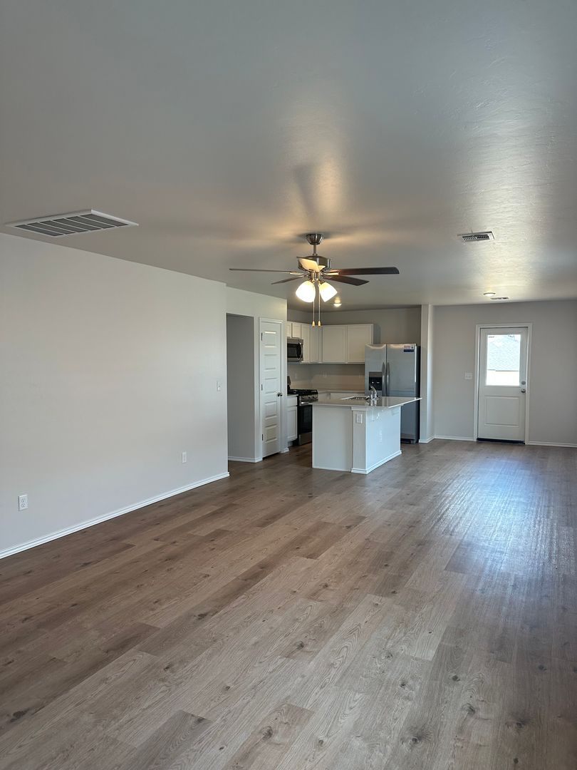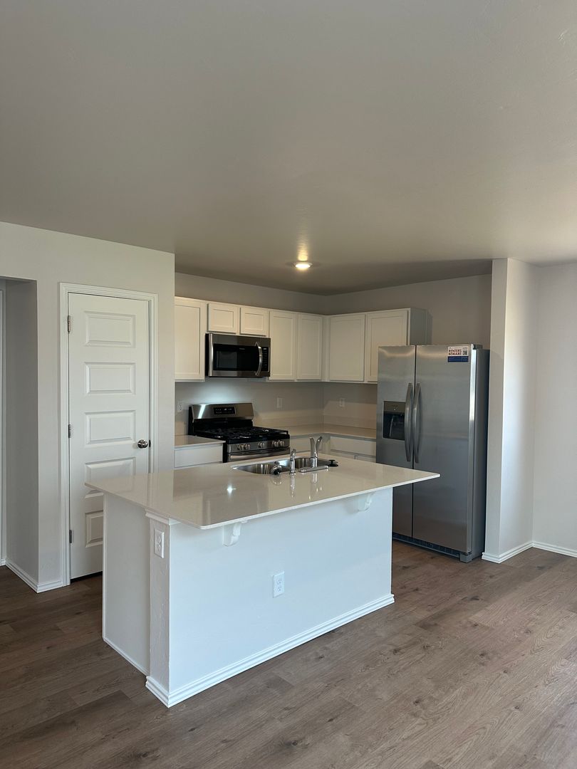 kitchen island, and a handy pantry for all your storage needs. The home features luxury vinyl plank