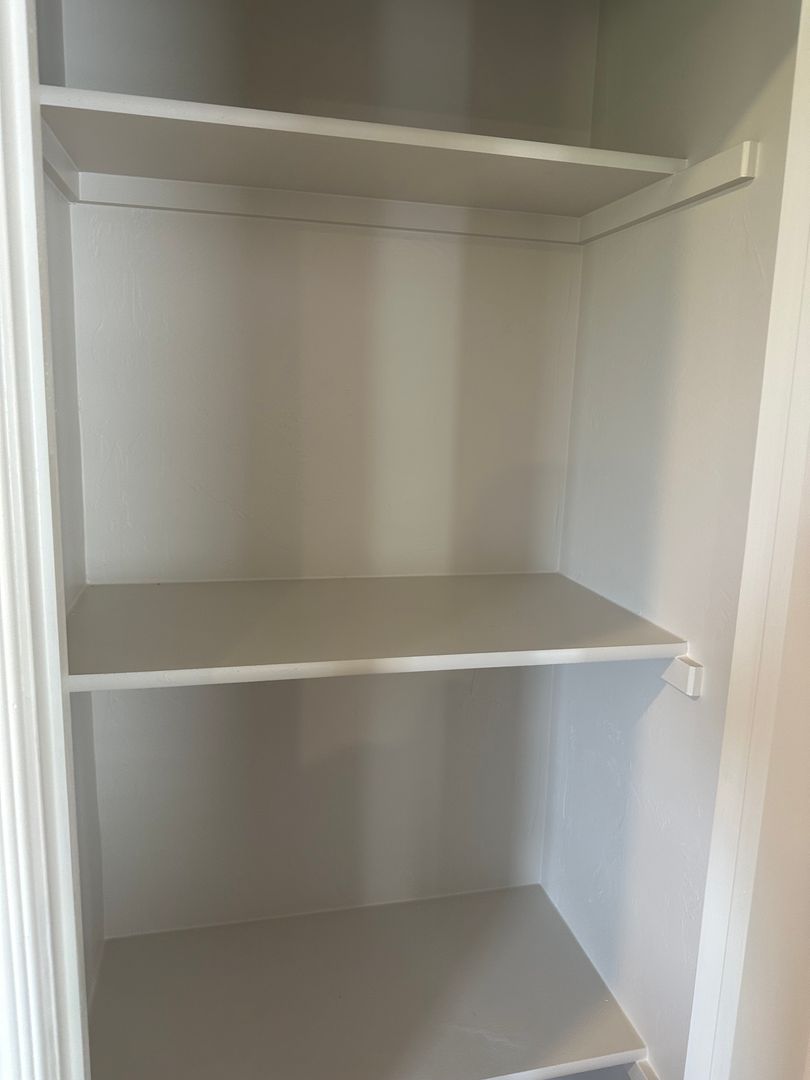 also includes window coverings for privacy and a dedicated laundry closet for convenience. The