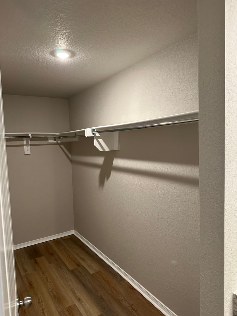 This modern home features an open concept layout, luxury vinyl plank flooring, stainless steel appliances, a spacious primary suite, walk-in closets, and large closets throughout.