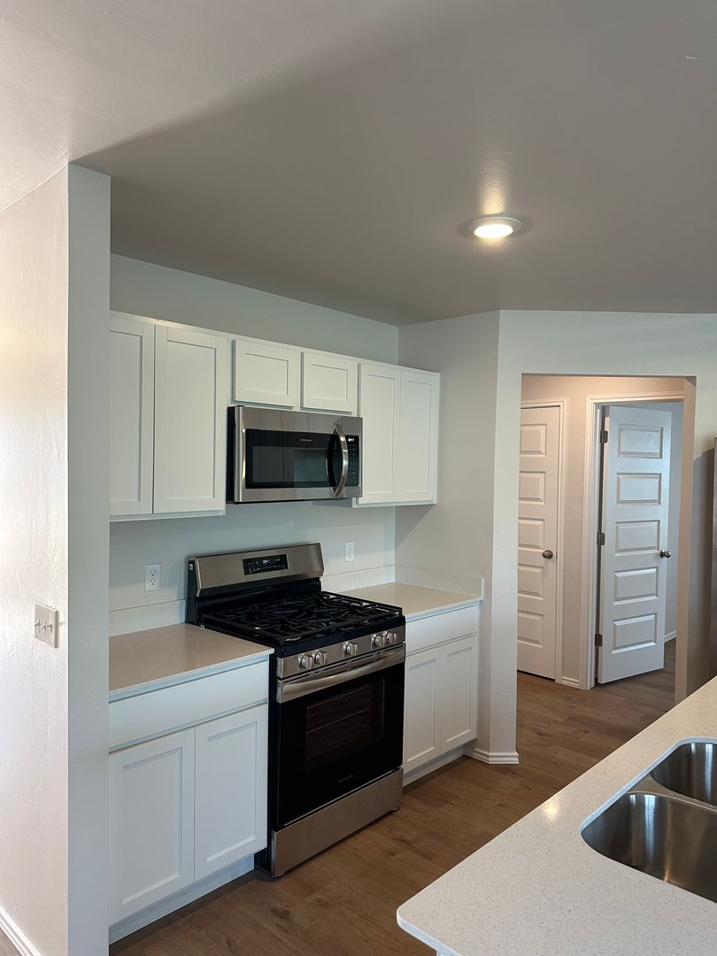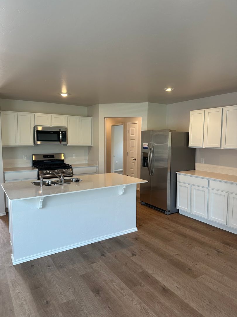 The kitchen is a chef's dream with beautiful quartz counter tops, ample storage in the pantry and the luxury of vinyl plank flooring.