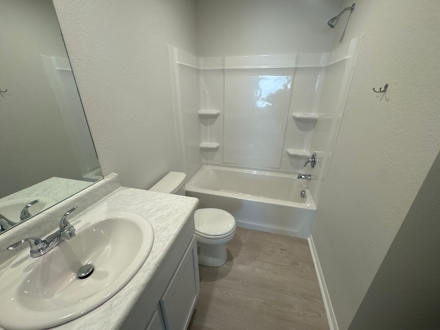 The two bathrooms are well-appointed and the home also includes a convenient laundry closet.