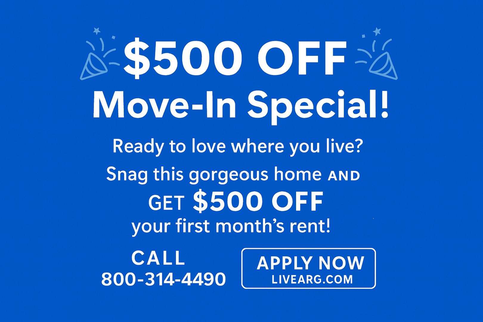 $500 off First Month's Rent - Don't miss out, expires October 31st!