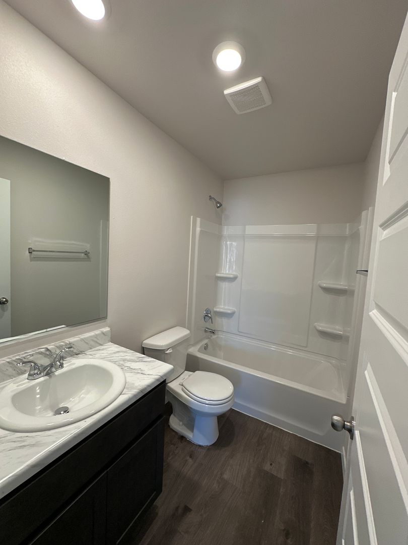 The two bathrooms are well-appointed and the home also includes a convenient laundry closet.
