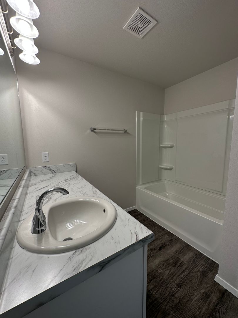The guest rooms have sizeable closets and share a Jack-n-Jill style bathroom located near them.