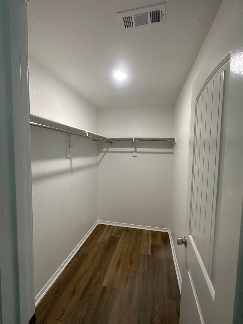 The primary suite features walk-in closets for ample storage space, while the central heating and air ensure year-round comfort.