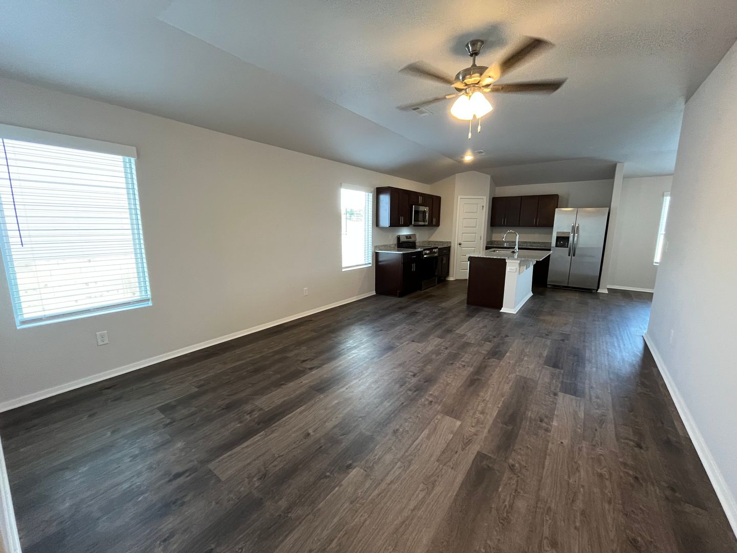 The open concept design is complemented by luxury vinyl plank flooring, creating a spacious and inviting atmosphere.