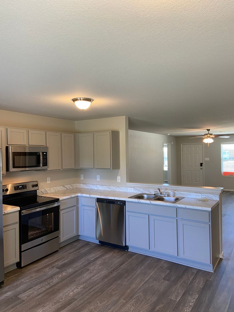 Your kitchen has all stainless-steel appliances and a large peninsula, it is perfect for entertaining!