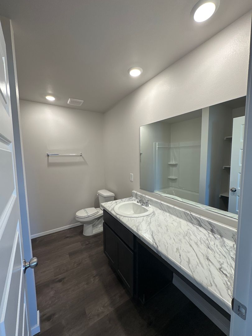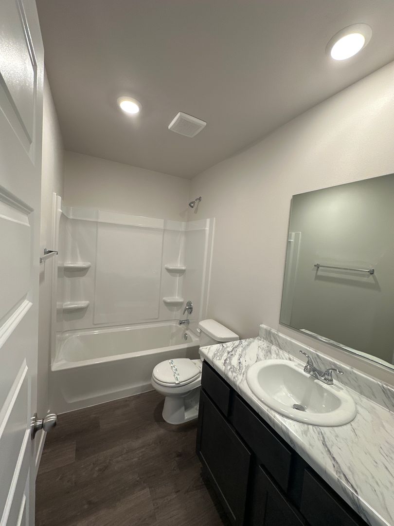 The two bathrooms are well-appointed and the home also includes a convenient laundry closet.