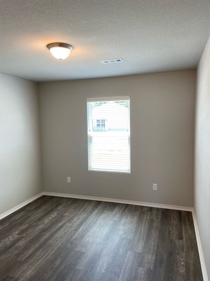 Your master suite has a walk-in closet and a spacious private bath. The two guest rooms have sizeable closets and share the second bathroom located near them.