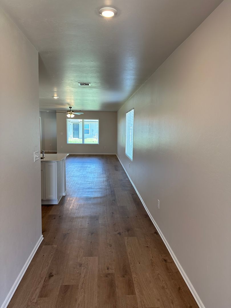 vinyl plank flooring throughout, adding a touch of elegance and durability. The covered patio is