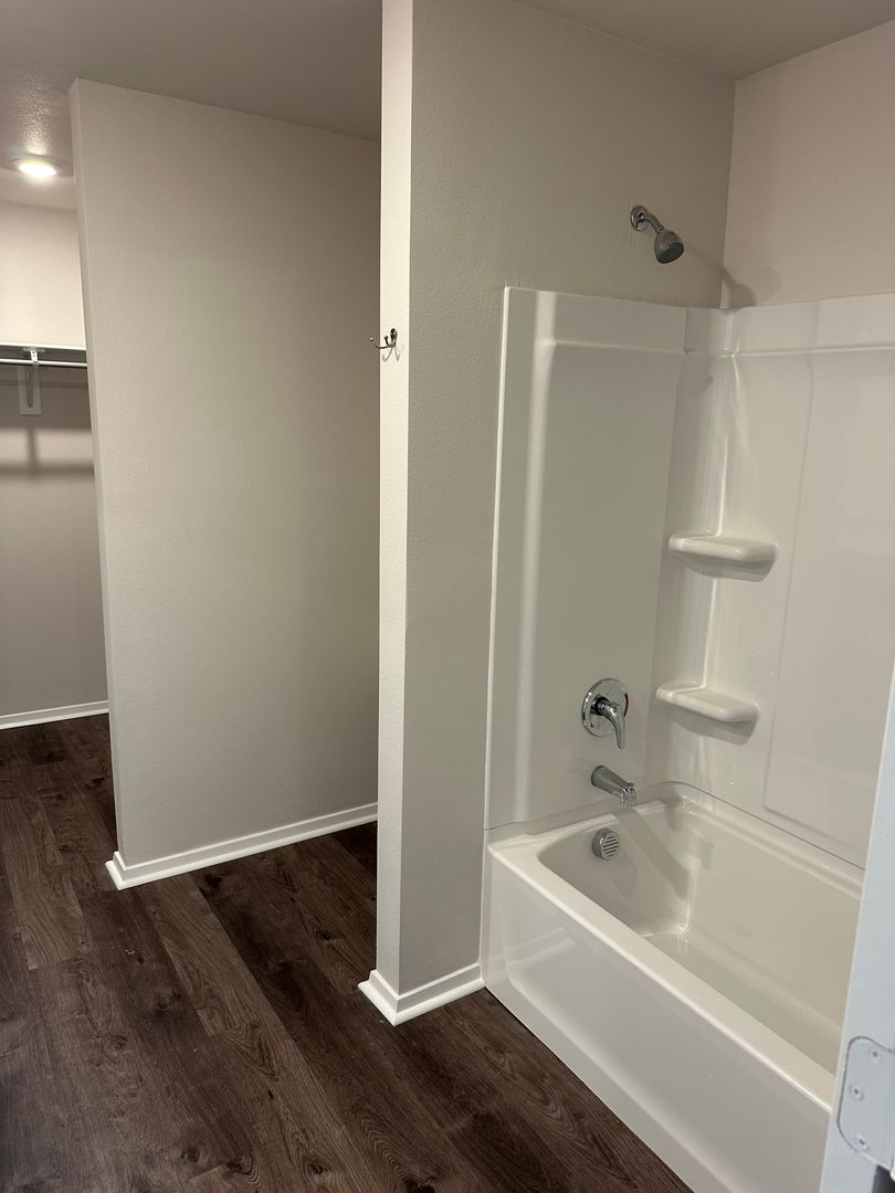 The two bathrooms are well-appointed and the home also includes a convenient laundry closet.