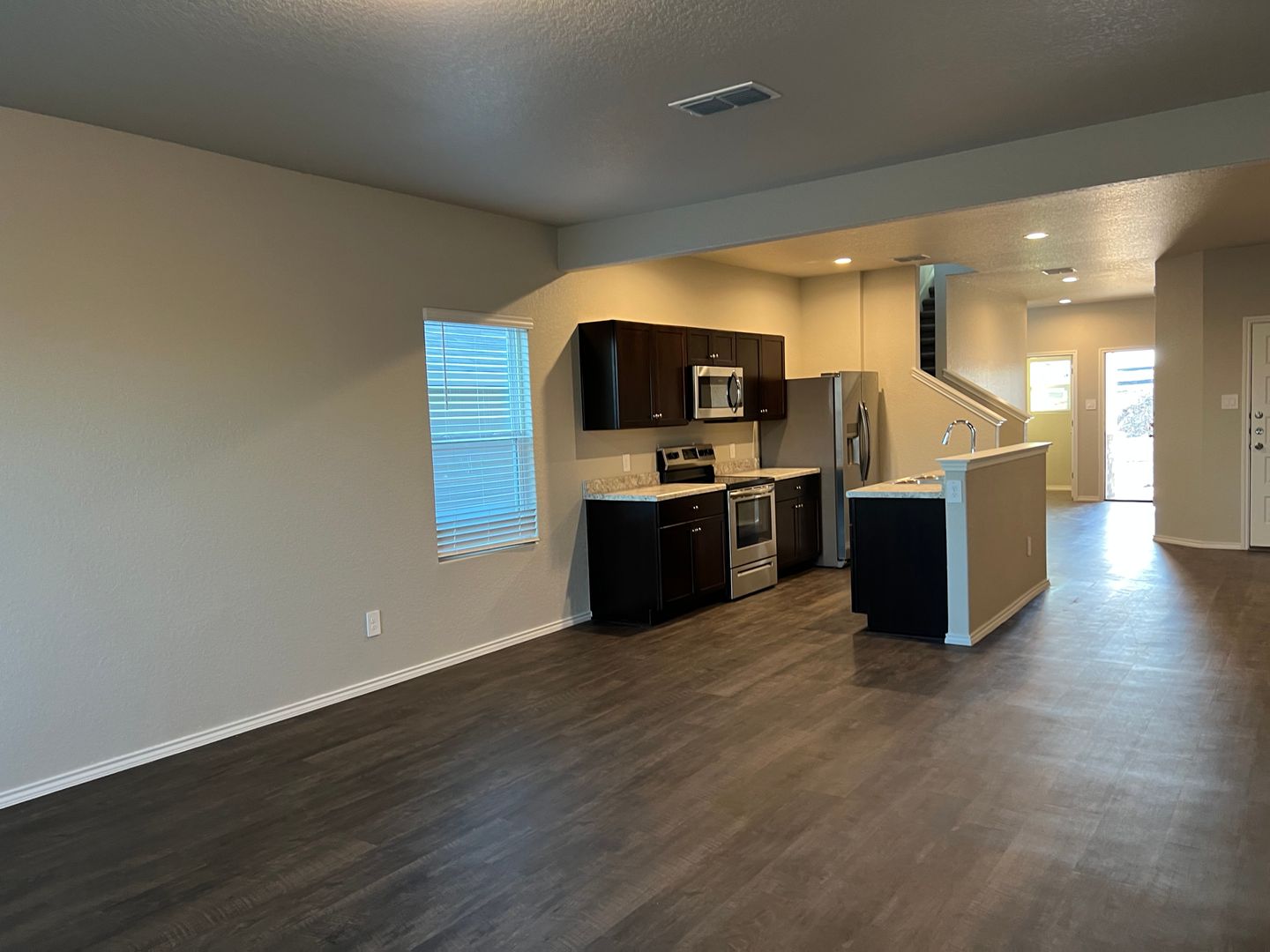 Enjoy an open concept living area with luxury vinyl floors, a large pantry, and natural lighting.