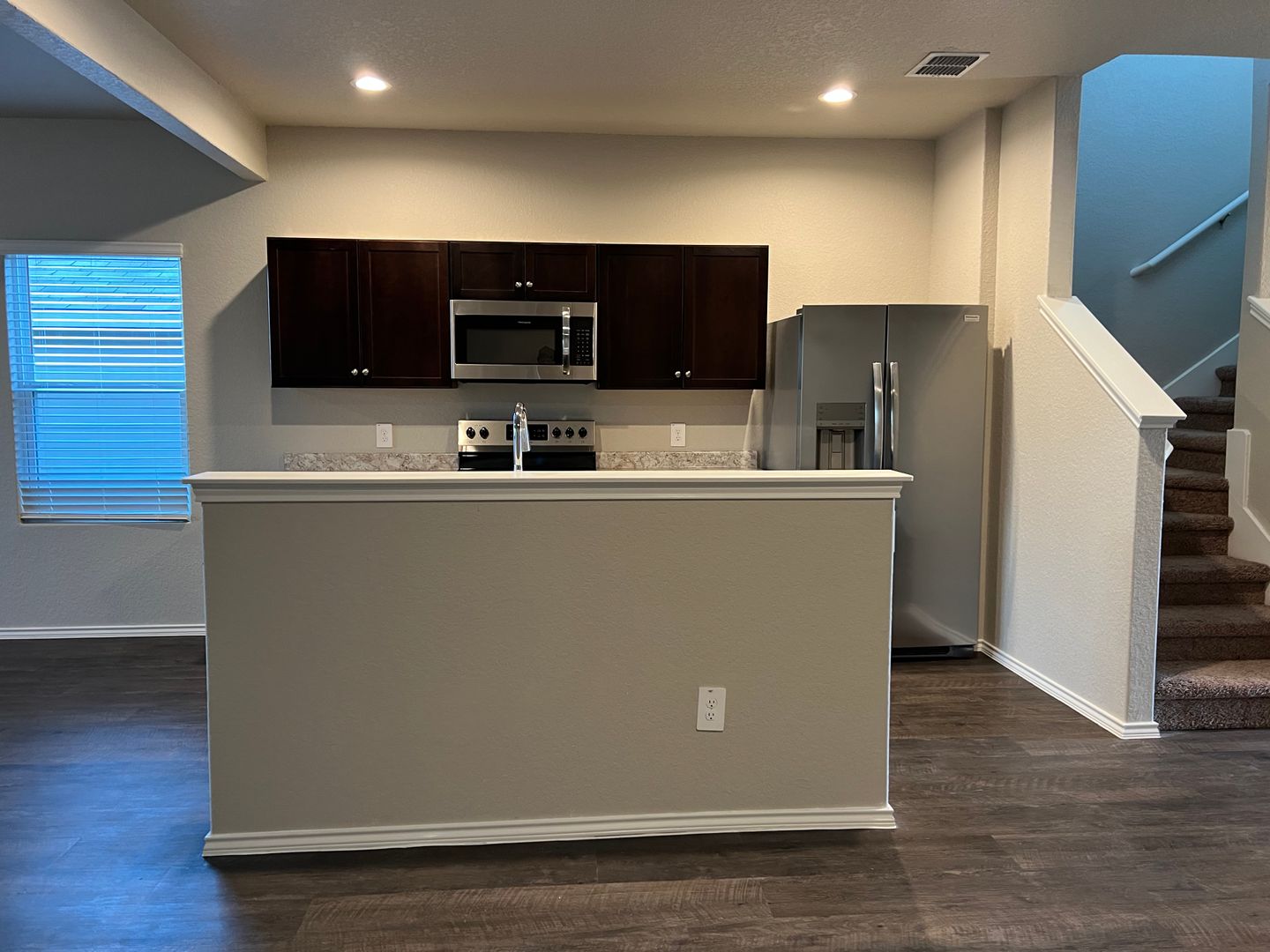 The kitchen comes with all stainless-steel appliances and your laundry room has washer and dryer connections.