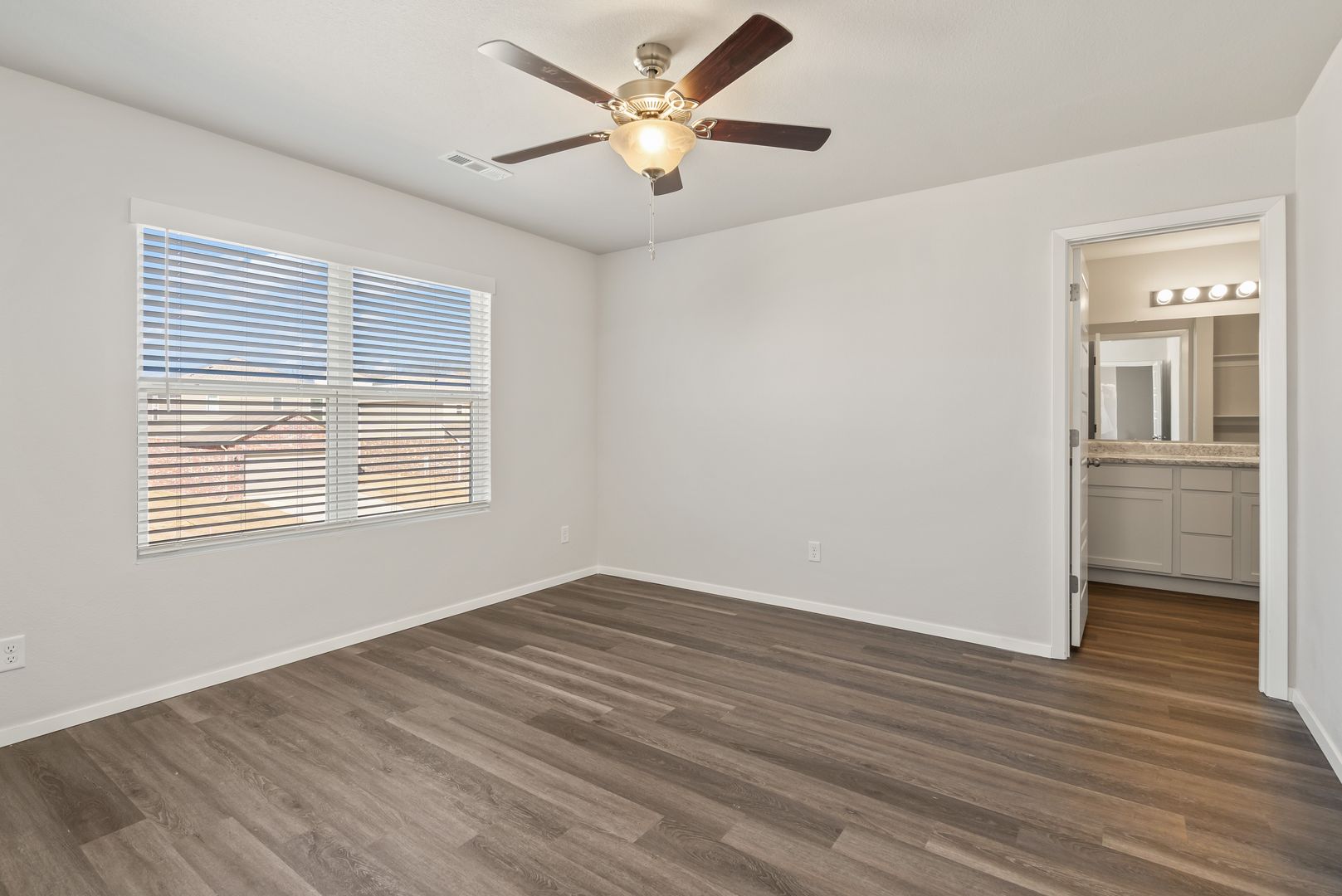 The master suite has a spacious walk-in closet and private bath while the guest bedrooms share the additional bathroom.