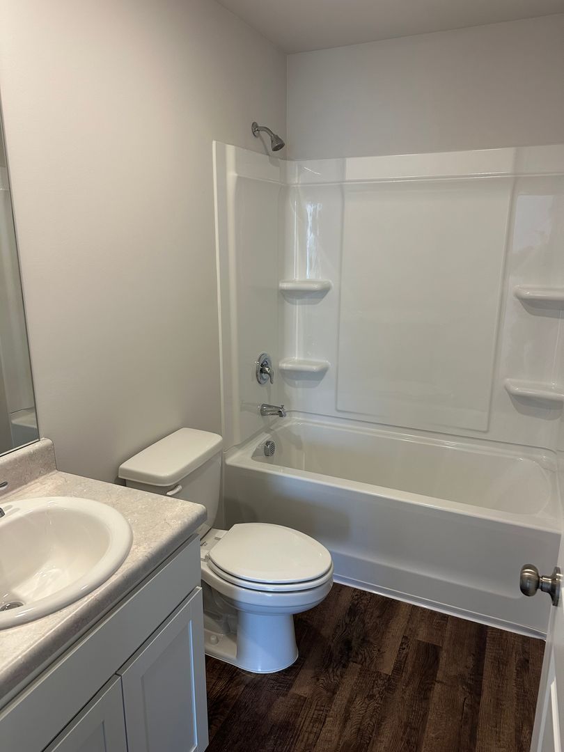 The two bathrooms are well-appointed and the home also includes a convenient laundry closet.