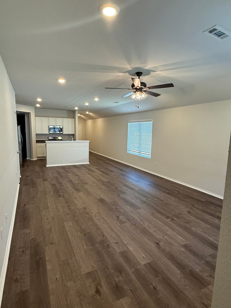 convenient island for extra prep space. The home features luxury vinyl plank flooring throughout,