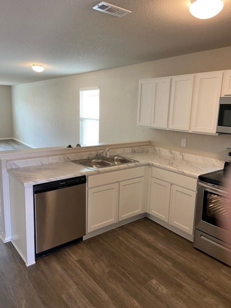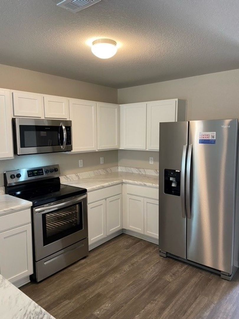 Enjoy luxury vinyl flooring throughout, an open concept living area, and a fully equipped kitchen! Your kitchen has all stainless steel appliances and opens up into the informal dining space and living room, making entertaining a breeze!