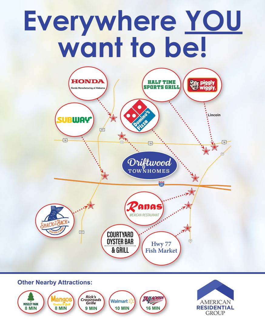 This community is located off of Exit 162 from I-20. Turn Left onto Hwy 78. Follow Hwy 78 for 3.6 miles. Driftwood Townhomes will be on the left.