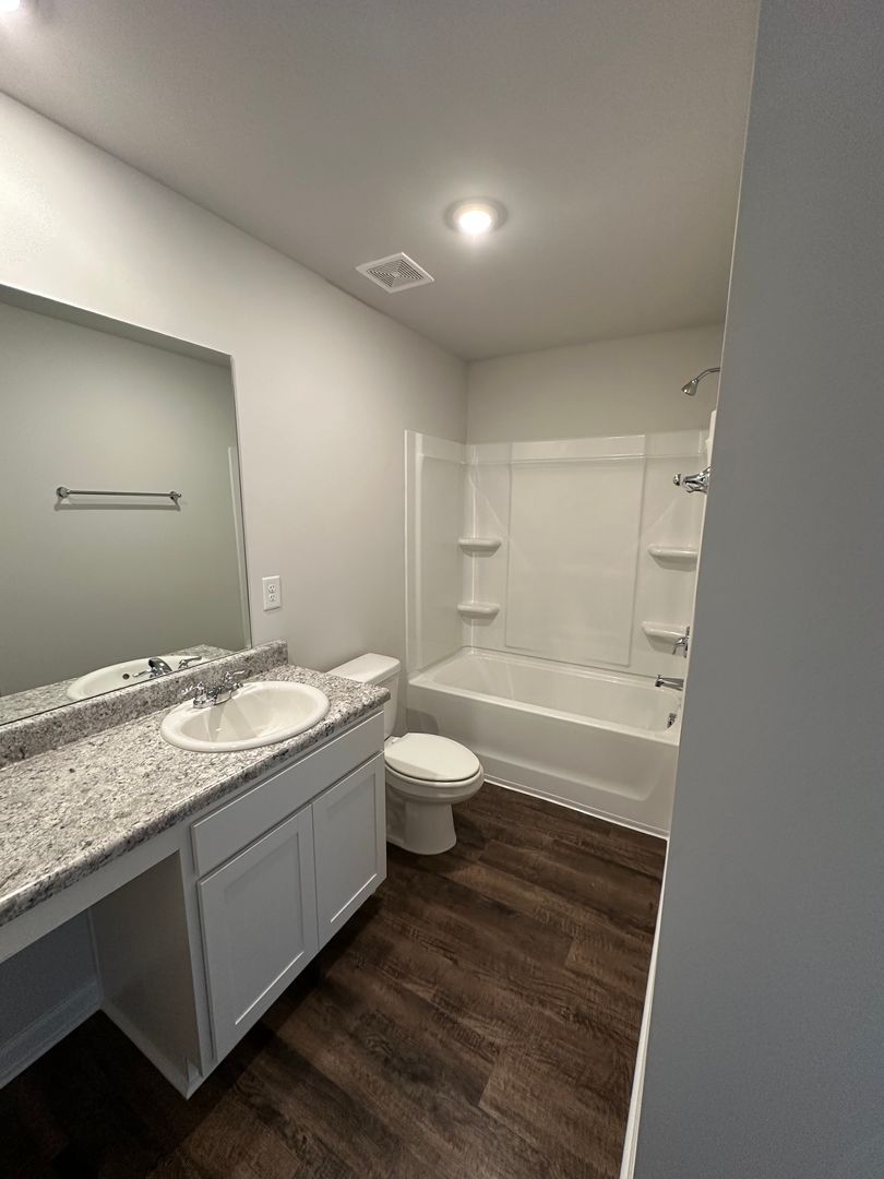 This modern home features luxury vinyl plank flooring, an open concept layout, a spacious primary suite, large walk-in closets, stainless steel appliances, blinds, and window coverings.