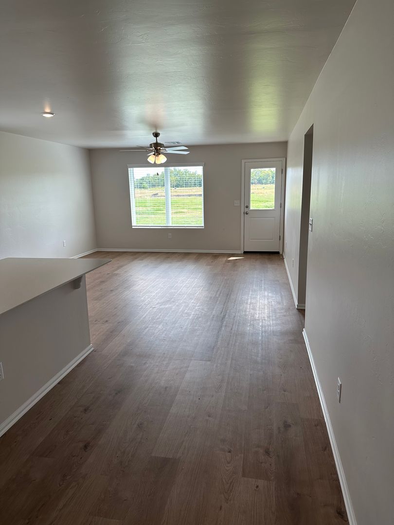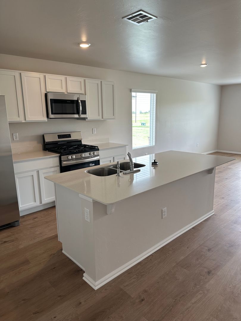and a convenient kitchen island. The home features luxury vinyl plank flooring throughout, adding a