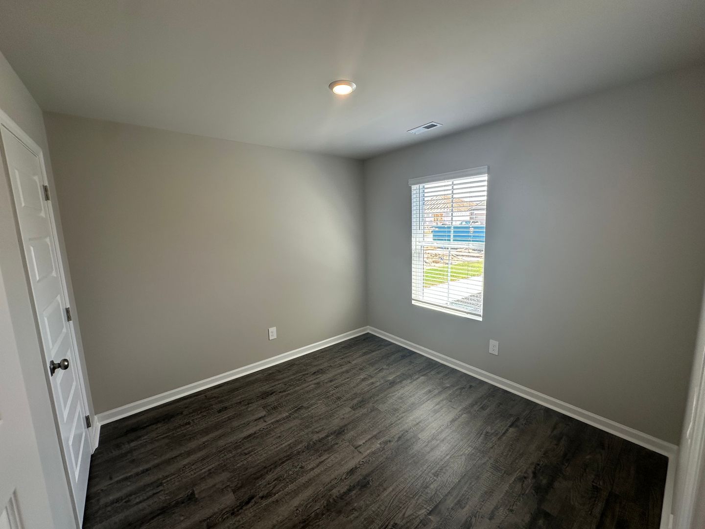 The luxury vinyl plank flooring adds a touch of elegance to the home, while the window coverings provide privacy.