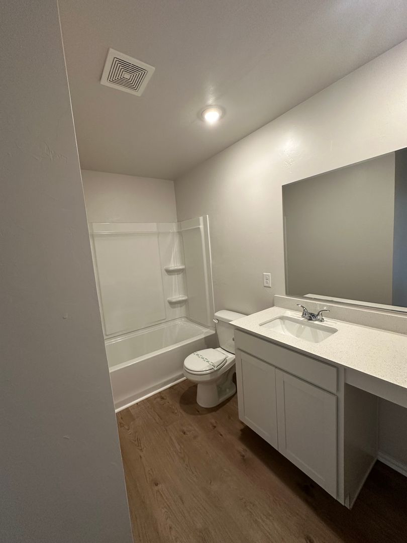 The home also features luxury vinyl plank flooring, ceiling fans, blinds, and window coverings for added comfort and convenience. The two-car garage provides ample space for vehicles or additional storage. The landscaped yard adds to the home's curb appeal and provides a great outdoor space. Inside, you'll find large closets and walk-in closets for all your storage needs. The primary suite is a true retreat with its own private bathroom.