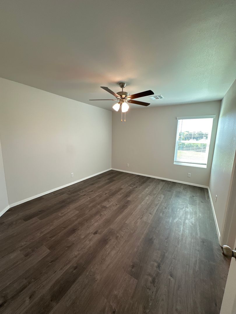 The home is pet-friendly and features a two-car garage for secure parking. The kitchen is a chef's dream with ample storage in the pantry. Each bedroom is equipped with large walk-in closets and ceiling fans, while the primary suite offers an added touch of luxury.