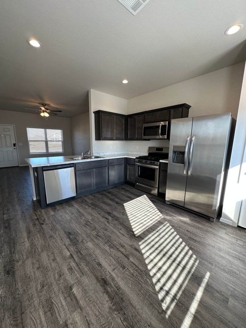 You can easily enjoy this fully equipped kitchen and the open concept living space with luxury vinyl throughout.
