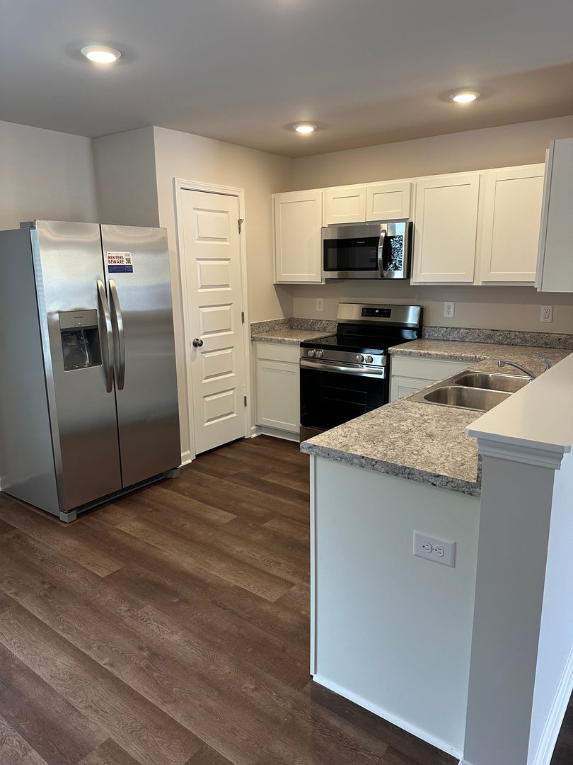 home features luxury vinyl plank flooring throughout, adding a touch of elegance to the space. The