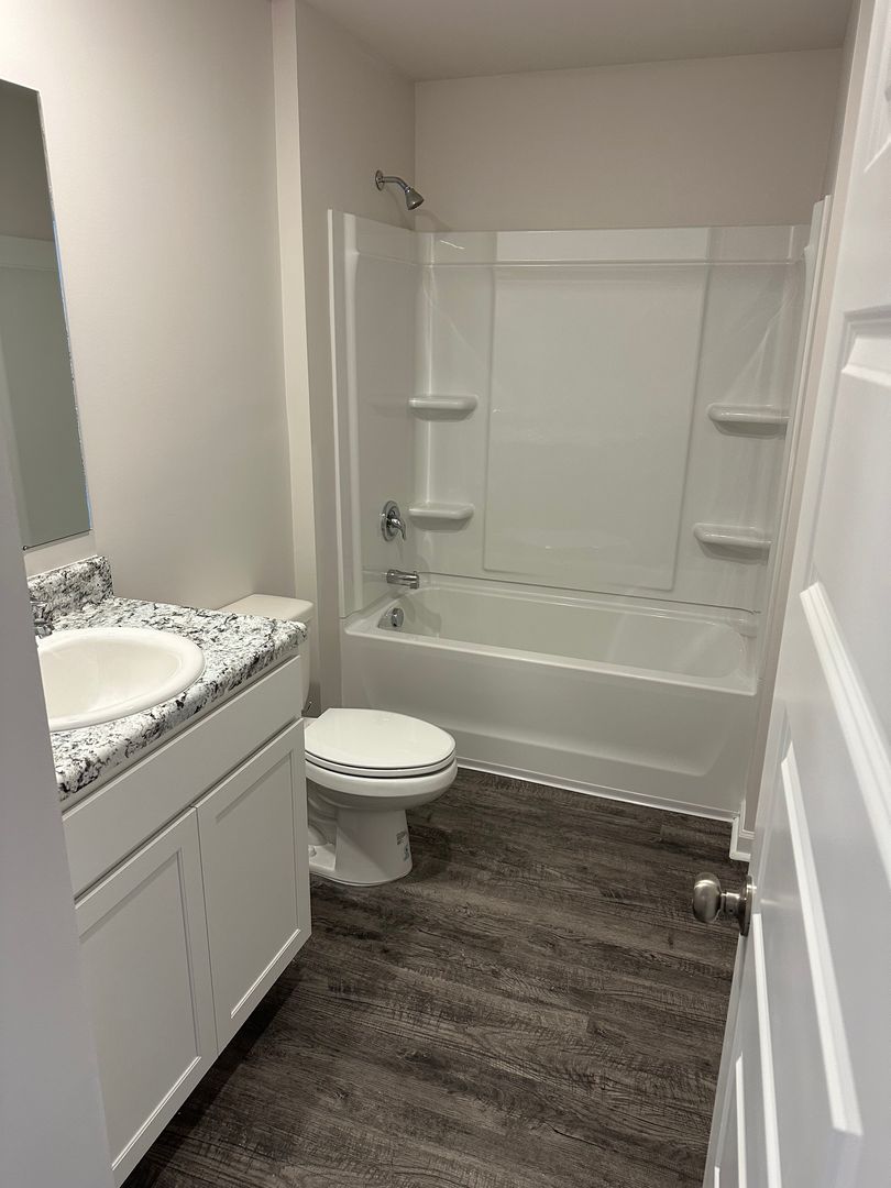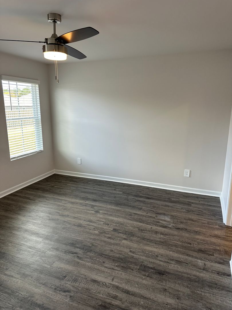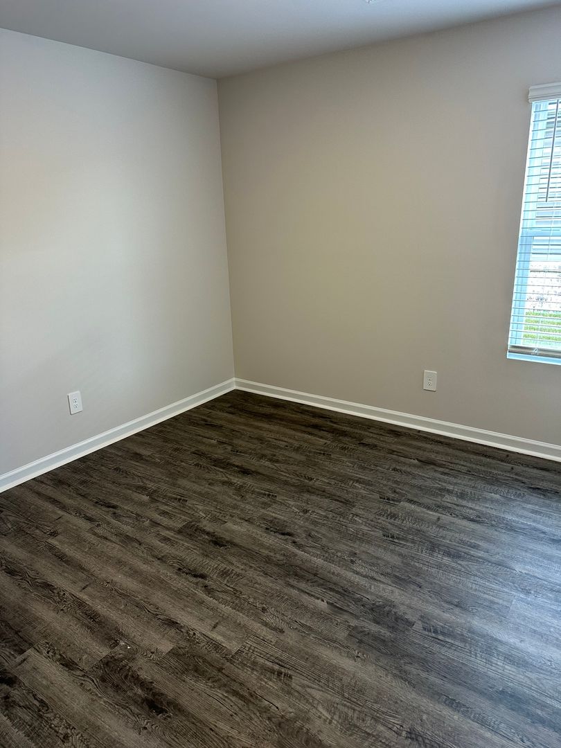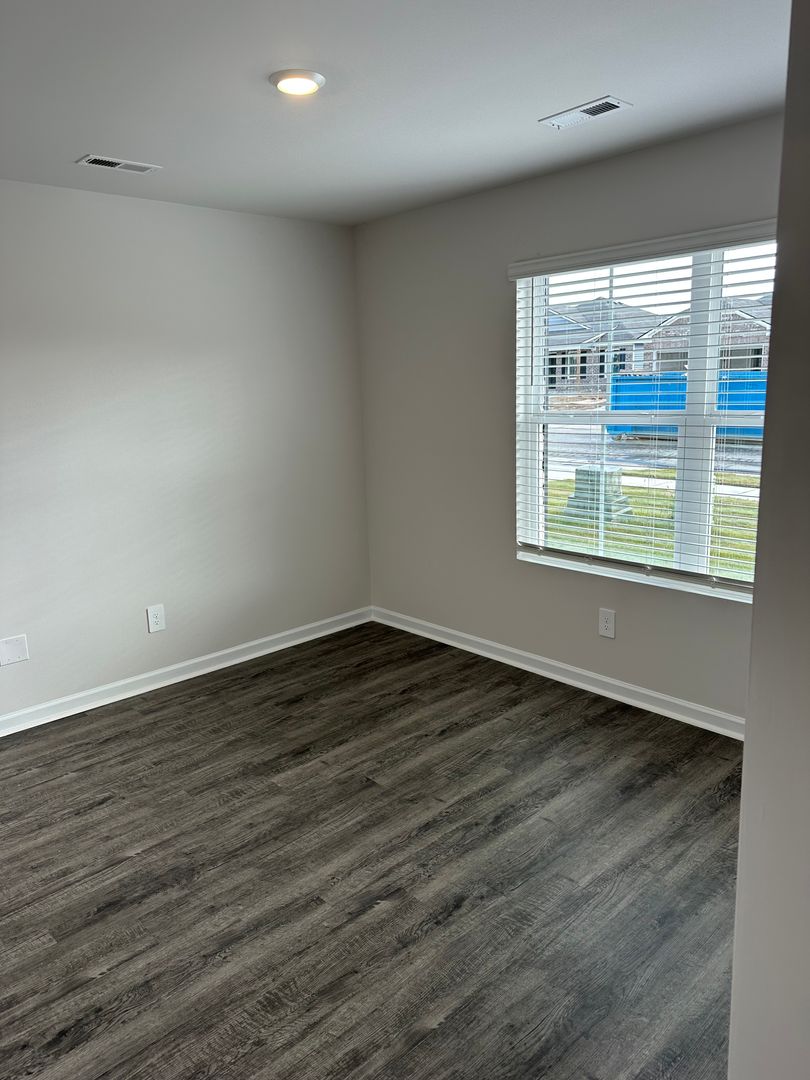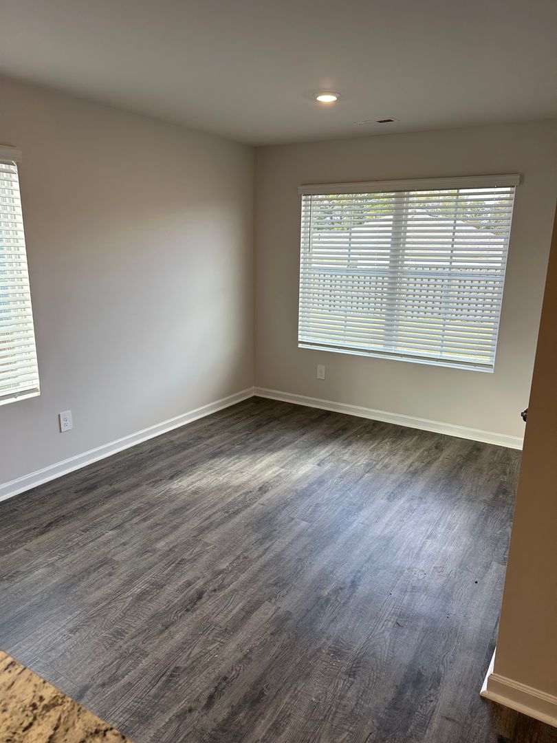 The luxury vinyl plank flooring adds a touch of elegance to the home, while the window coverings provide privacy.