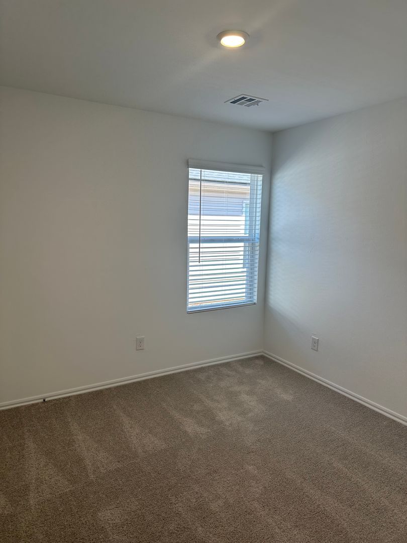 private bathroom. Additional features include a laundry room, window coverings for privacy, and a